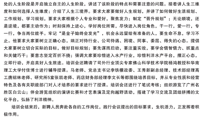 利洋公司以“做百年老店成就千萬養(yǎng)殖戶”為目標(biāo) 培訓(xùn)新聘業(yè)務(wù)與技術(shù)服務(wù)人員