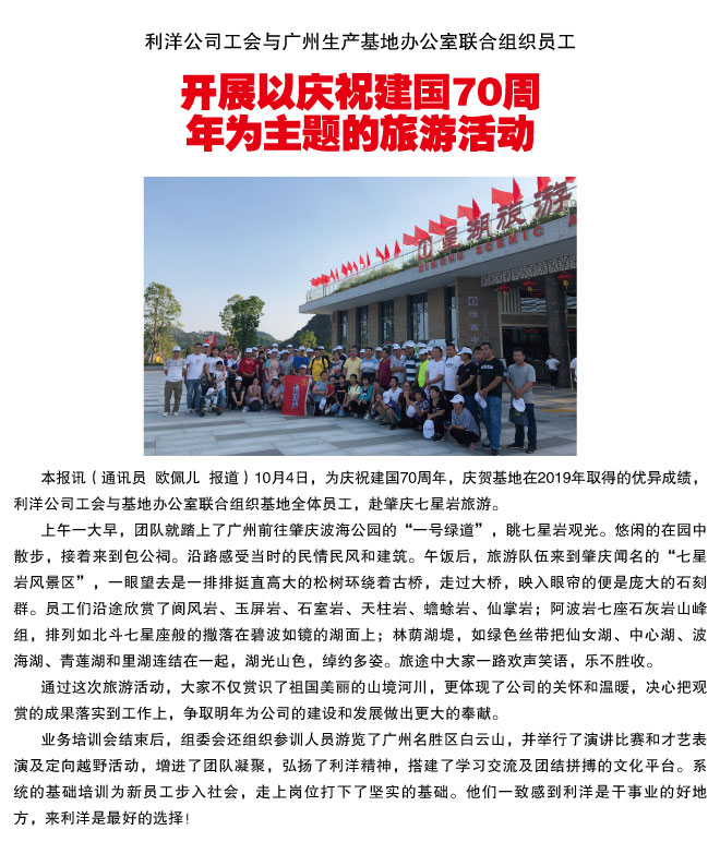 利洋公司工會與廣州生產(chǎn)基地辦公室聯(lián)合組織員工開展以慶祝建國70周年為主題的旅游活動