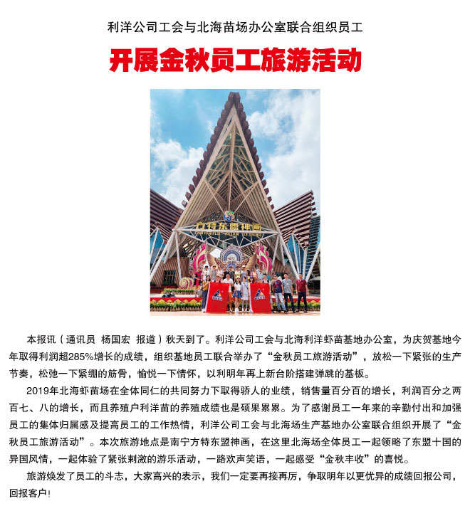 利洋公司工會與北海苗場辦公室聯(lián)合組織員工開展金秋員工旅游活動